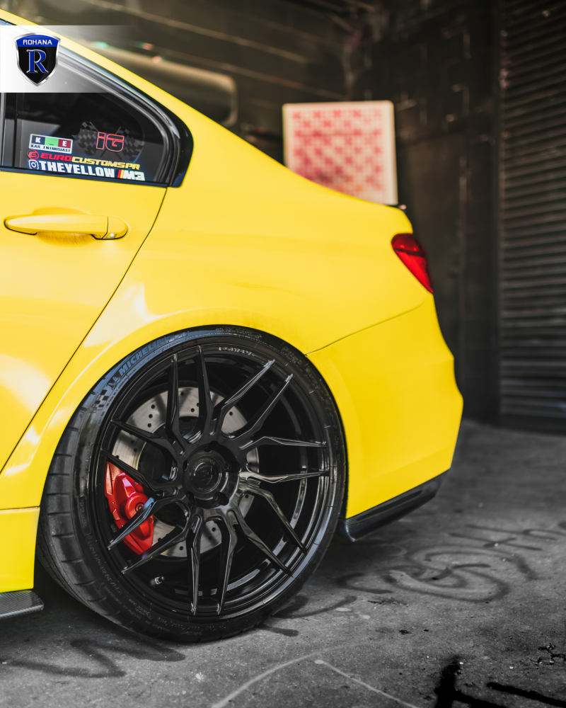 BMW M3 yellow на дисках RFX7 gloss black